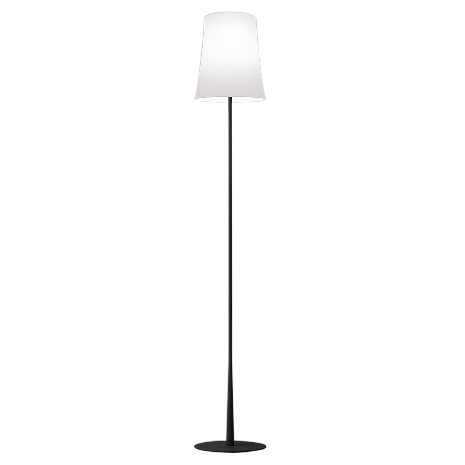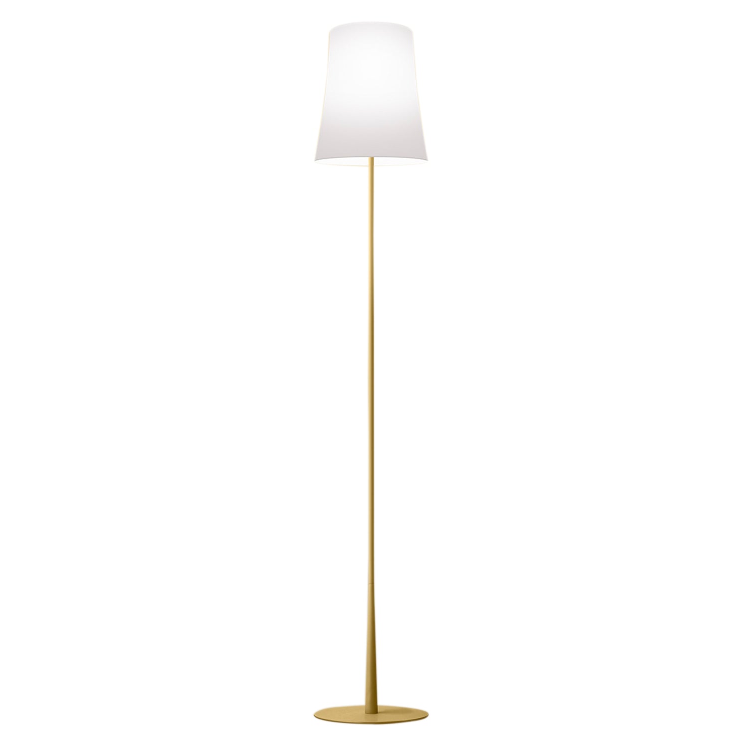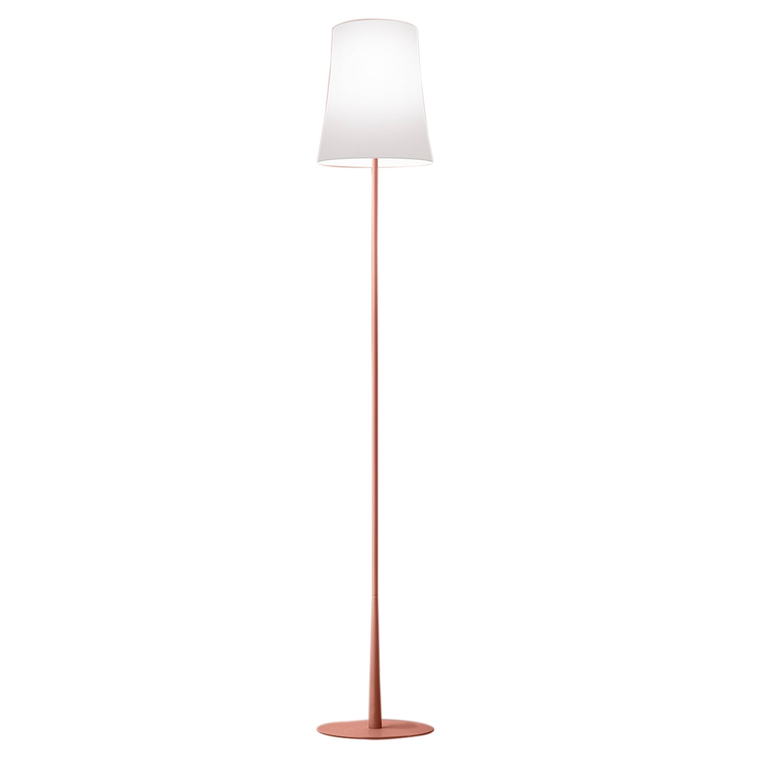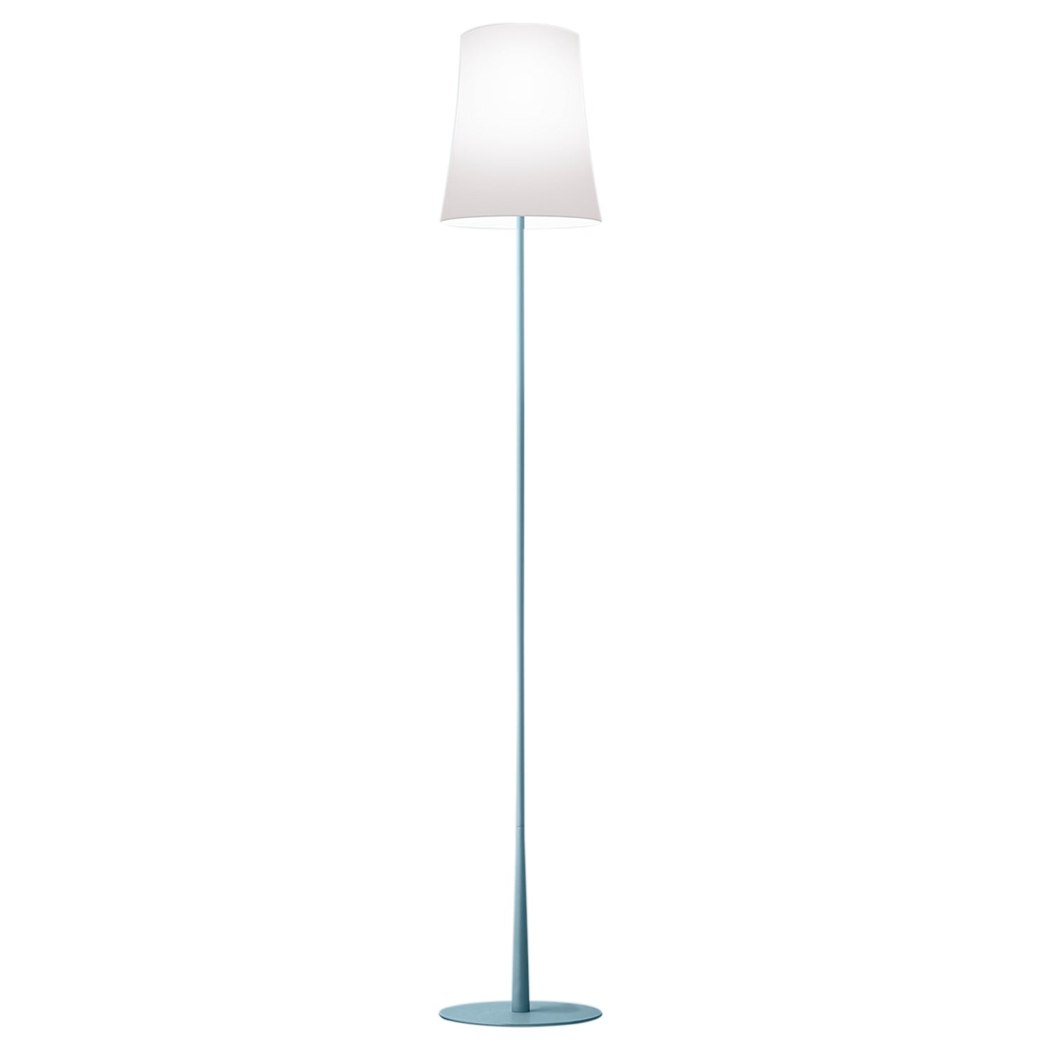 The Birdie Easy Floor Lamp designed by Ludovica and Roberto Palomba for Foscarini, marries a classic and simple form with the latest lighting technology. The tapered shade in opaque white is combined with a streamlined stem and base crafted from liquid coated aluminium, available in a variety of pastel tones. The opaque glass shade gently diffuses the light, making Birdie Easy an ideal reading lamp. Completed with a transparent cable and integrated switch.