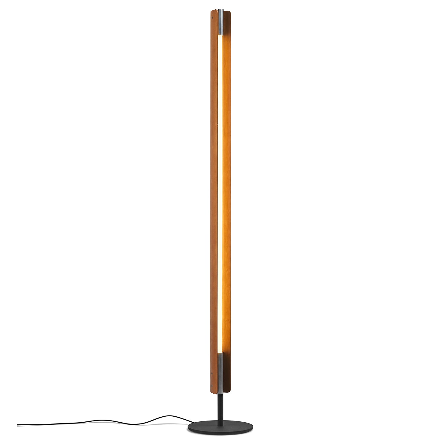 Emitting both direct and indirect light with a symmetrical and asymmetrical distribution, the central tubular light source can be adjusted to suit the needs of the moment with its integrated dimmer function. A circular black aluminium base supports this slimline floor lamp, freeing up space in its surroundings with a minimal footprint.