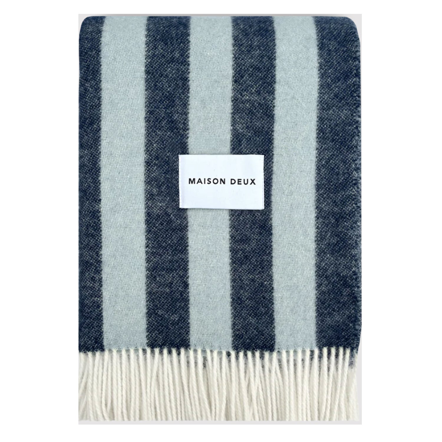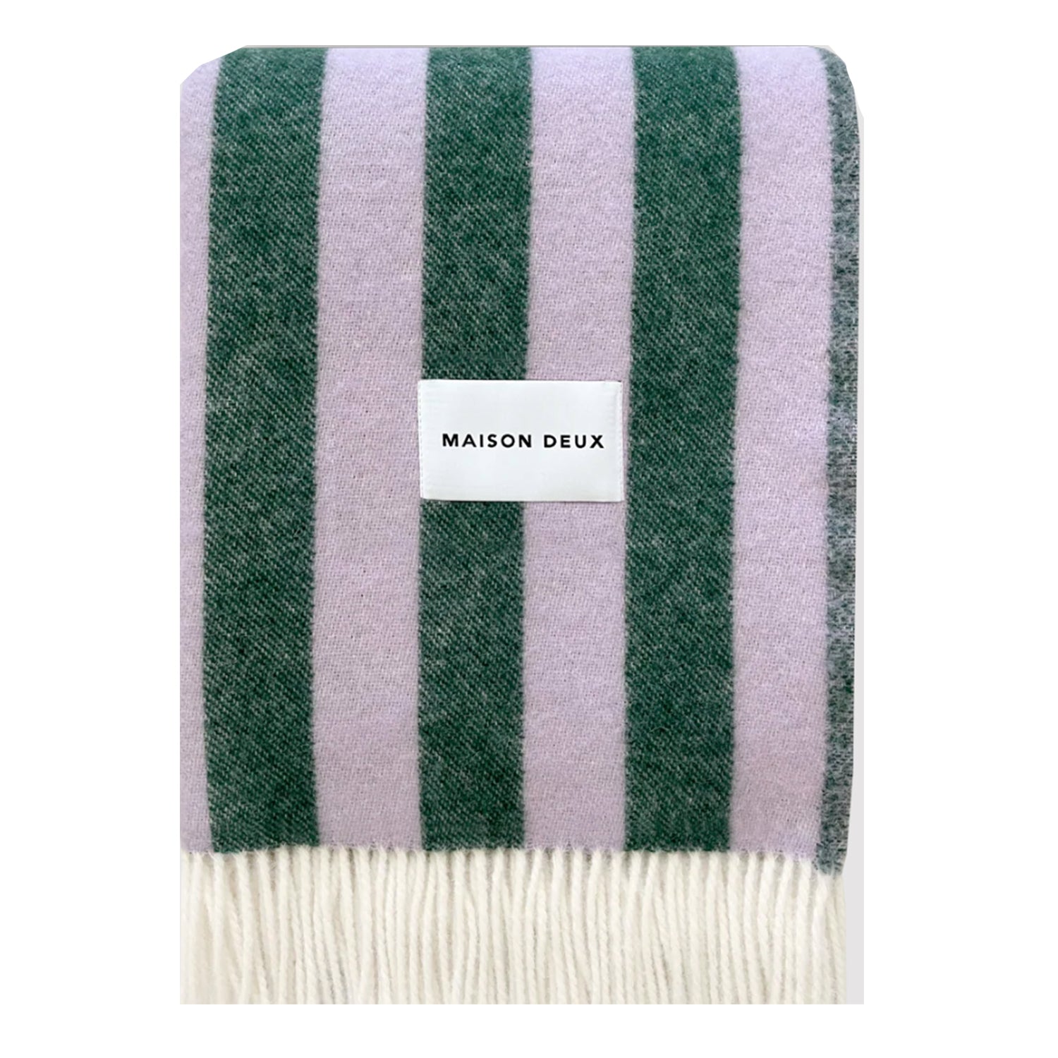 The Candy Wrap Stripe Blanket by Maison Deux is crafted from jacquard-woven 100% New Zealand wool in a pastel colour palette. Finished with fringe detailing at both ends, this luxuriously-soft premium wool throw is mirror-inverted on the opposite side. Perfect for hunkering down on the sofa or draped over the bed. This colourful blanket is sure to add the finishing touches to your interior. Machine washable at 30degrees.