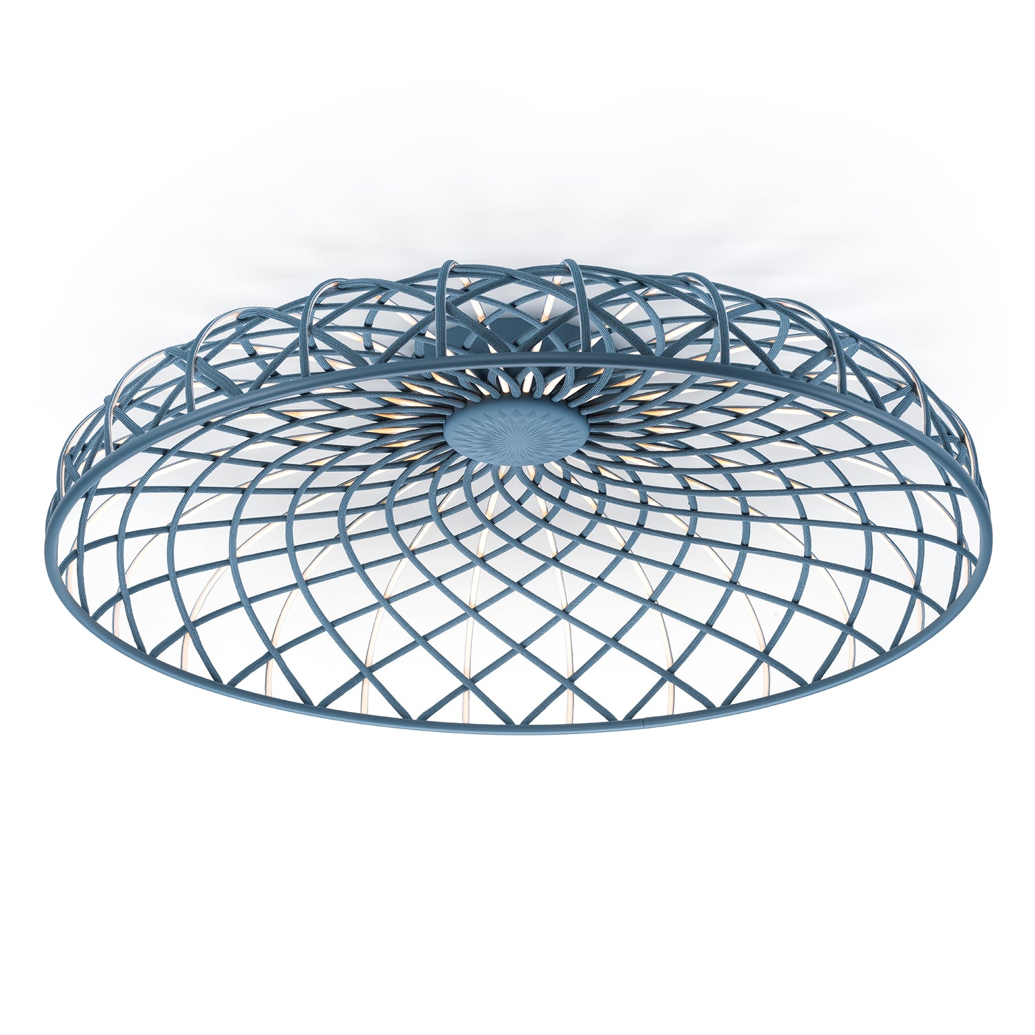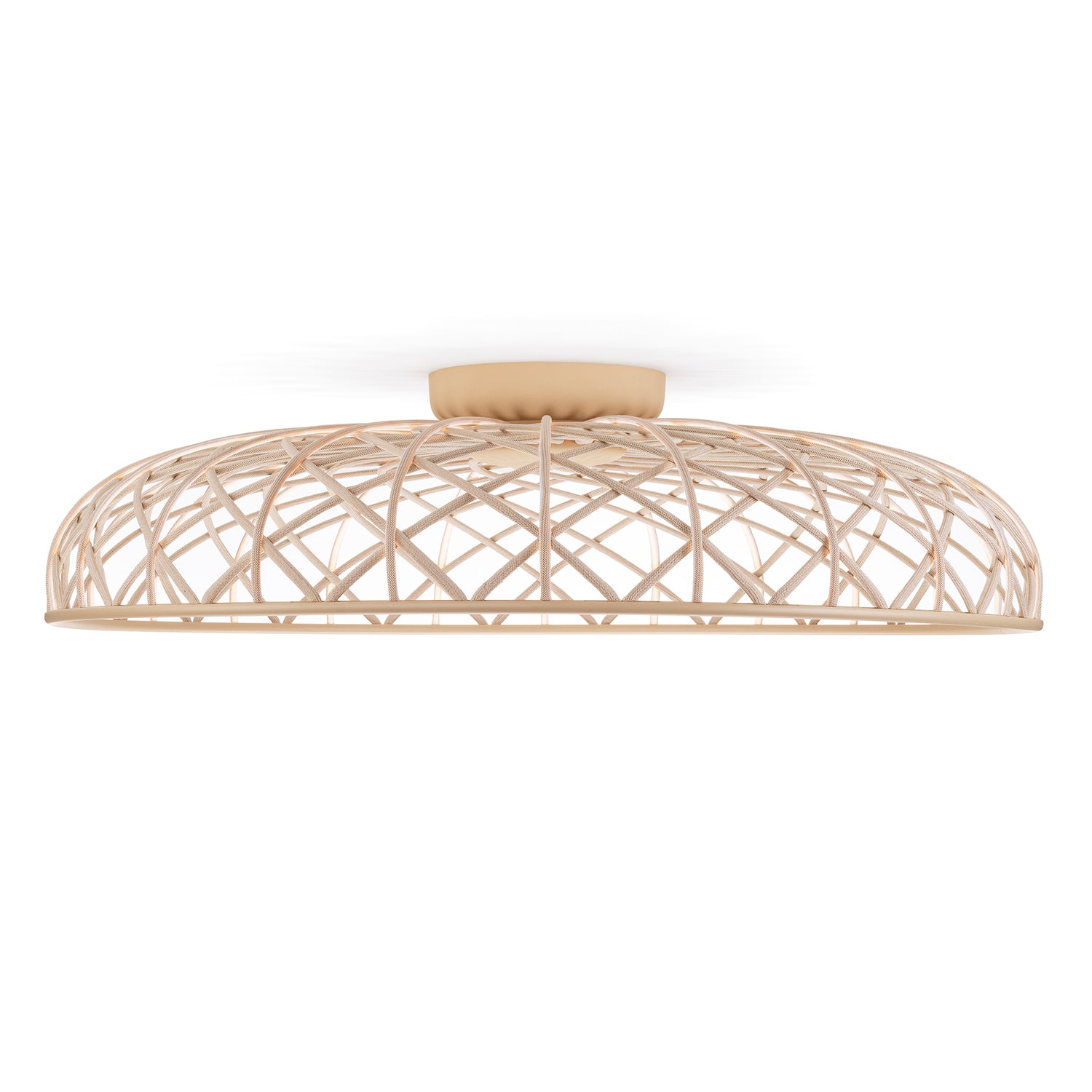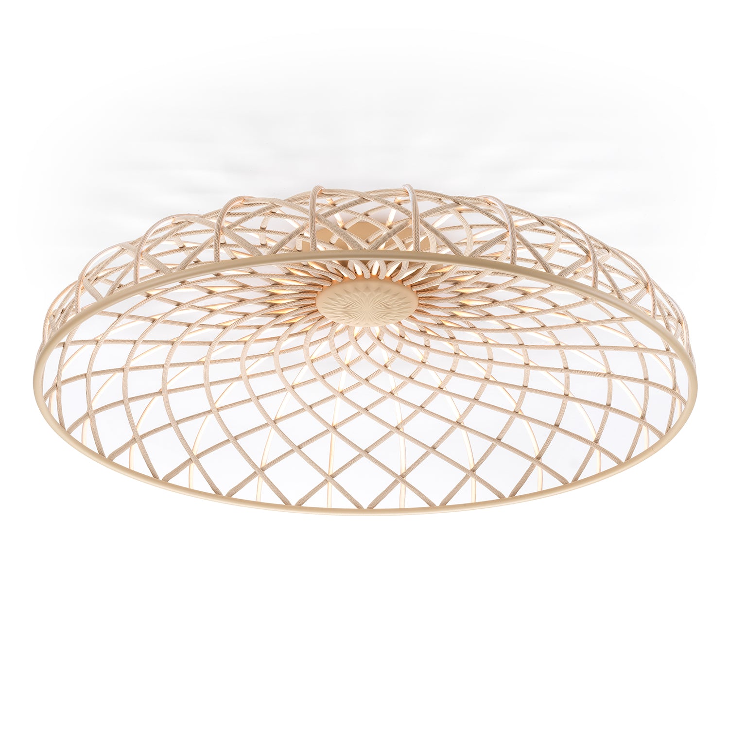 Designed by Marcel Wanders Studio for Flos, the Skynest Ceiling light evokes a poetic design language, combining formal elegance with technical innovation. Featuring an LED strip light source, Skynest is woven from textile tube, to create a sculptural form, alluding to the structure of an artisan basket. Blending the aesthetics of traditional craftsmanship with futurist technology, Skynest is essentially woven light, as the filament itself emits a soft and diffused light.