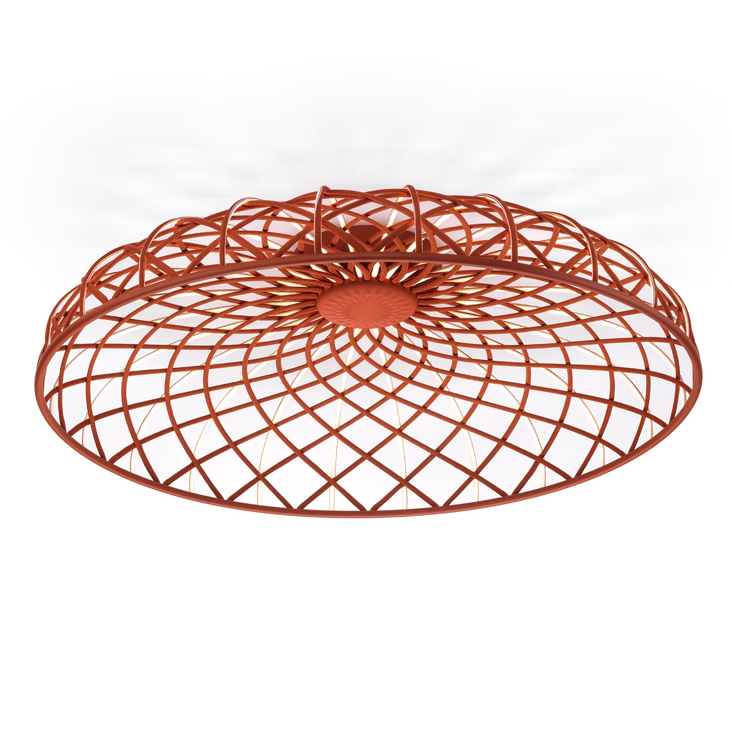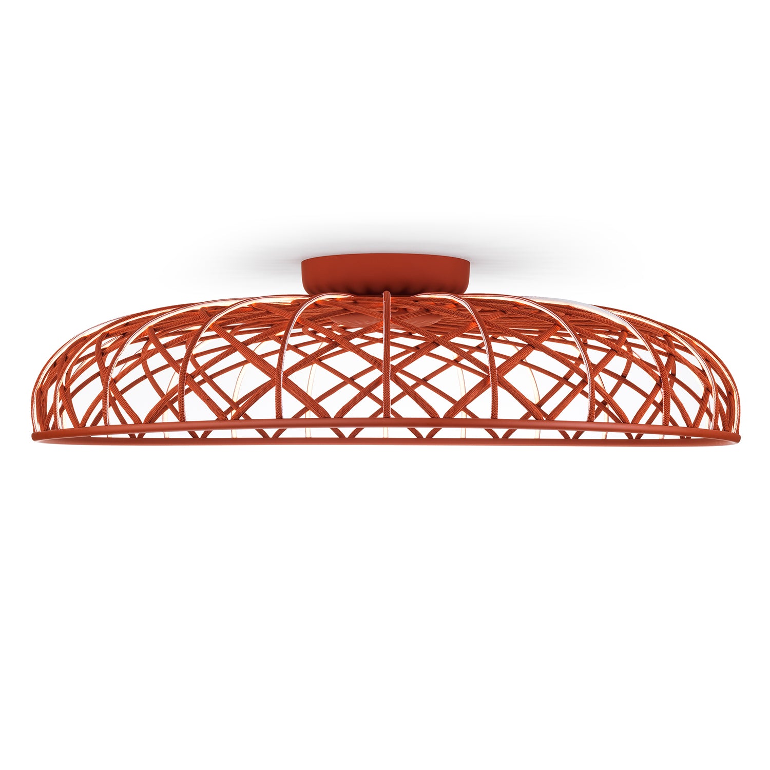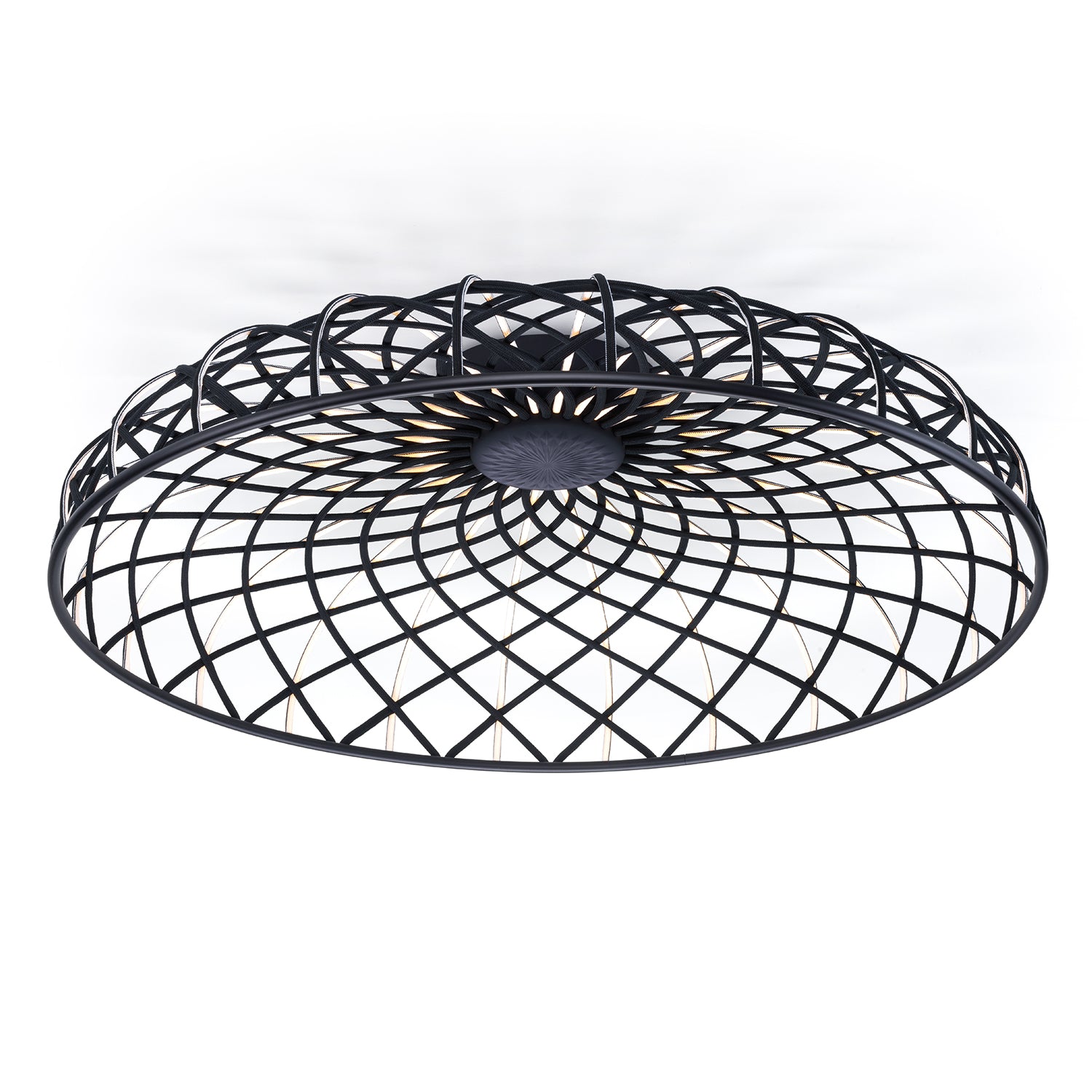 Designed by Marcel Wanders Studio for Flos, the Skynest Ceiling light evokes a poetic design language, combining formal elegance with technical innovation. Featuring an LED strip light source, Skynest is woven from textile tube, to create a sculptural form, alluding to the structure of an artisan basket. Blending the aesthetics of traditional craftsmanship with futurist technology, Skynest is essentially woven light, as the filament itself emits a soft and diffused light.
