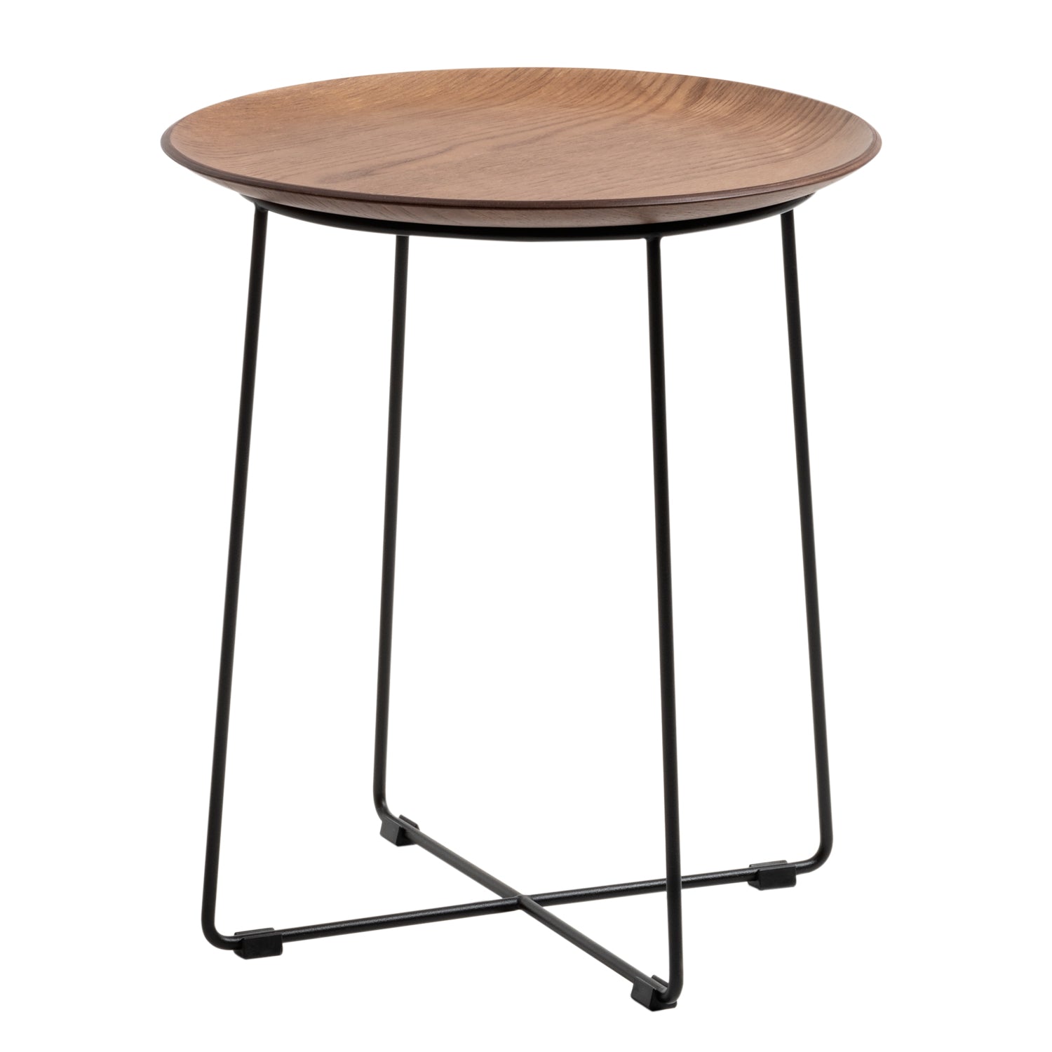 The AL Wood Side Table, designed by Philippe Starck for Kartell, combines versatility with modern aesthetics in a compact occasional table. With a circular table top, crafted from curved wood veneer and an elegant steel base in chrome or black, this practical side table fits perfectly into modern living spaces or at the bedside. The rounded table top has ample space for placing drinks and your favourite book.