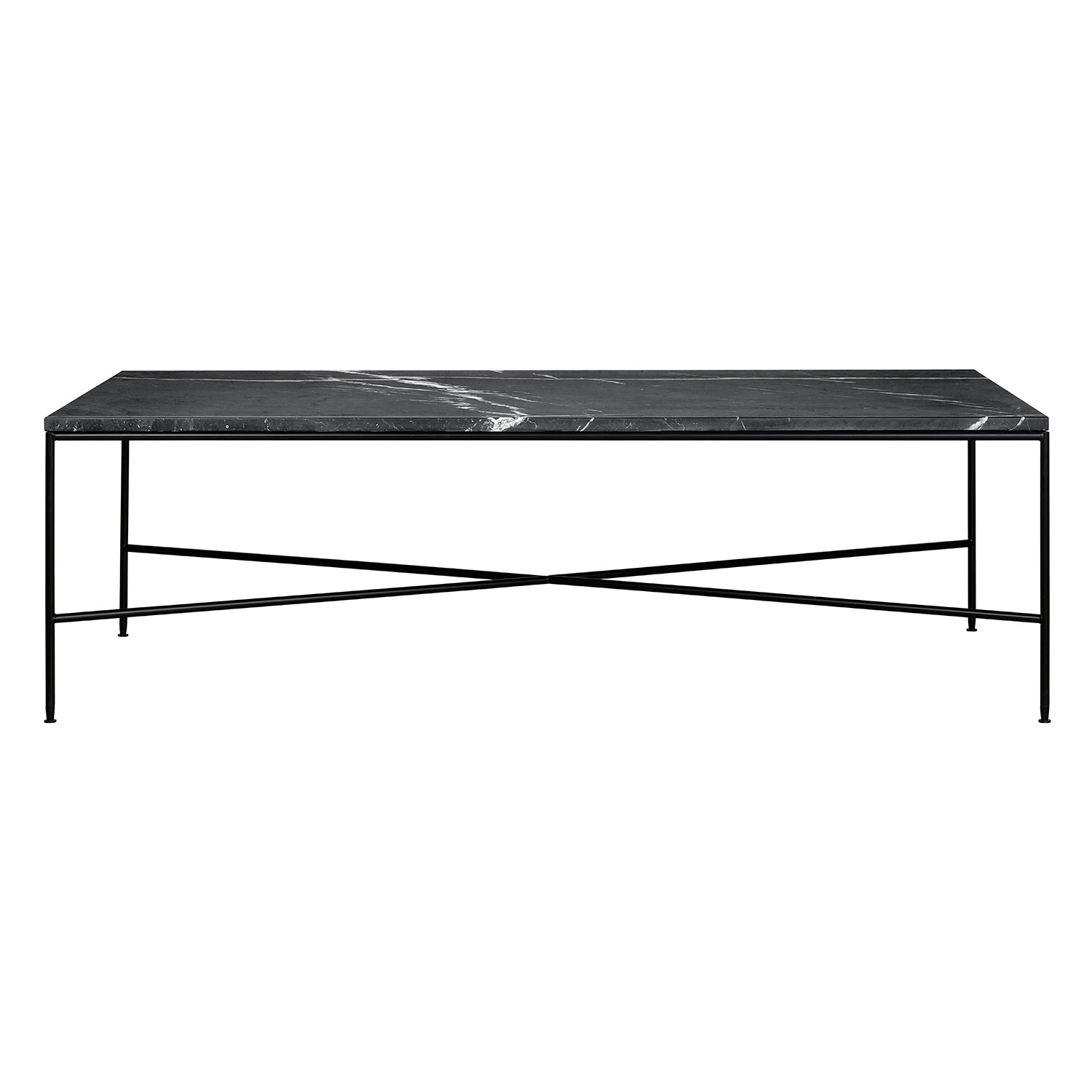 The Planner Rectangular Coffee Table illustrates tactile simplicity, each marble table top is available in a variety of sizes, with ample space for books, magazines and drinks. The base, crafted from steel, creates a slim framework with geometric lines.