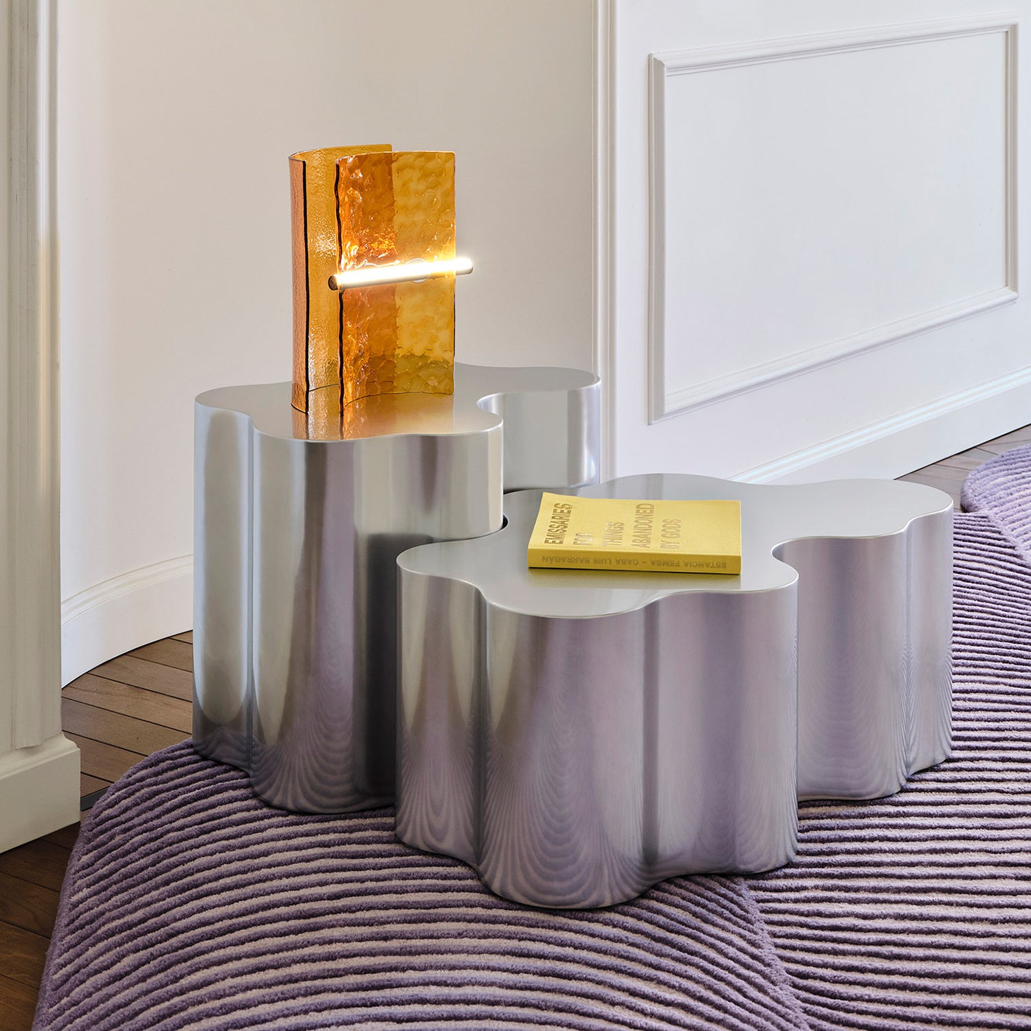 The Teatro Magico Coffee Table by Saba is a new concept in sculptural tables inspired by the undulating waves and rock formations. Its otherworldly form is comprised of two interconnecting low tables, each with an organically-shaped silhouette. Two volumes with two unique heights come together to create one interlocked table or they can be placed individually as separate side tables. Available with a matt or mirrored finishes, this statement coffee table is sure to become the focal point of any contemporary living space.