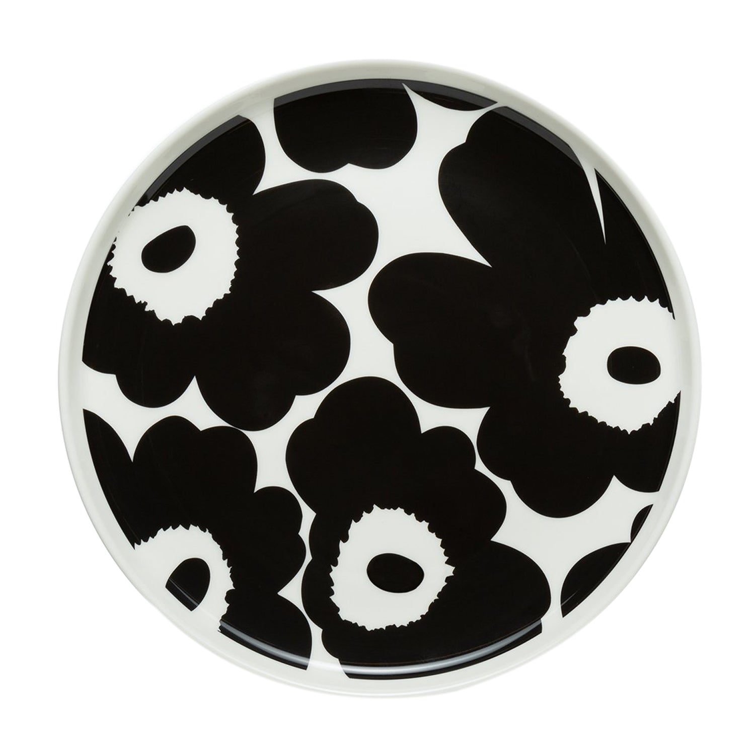 The Oiva plate by Marimekko features the classic Unikko bold floral pattern in black and white. Crafted from white stoneware with Marimekko’s famous poppy print. Unikko was born in 1964 in a time when the design house’s collections featured mostly abstract prints. Designer Maija Isola wanted to create something interesting from this organic theme and designed an entire range of floral prints. Today, the iconic flower represents creativity.