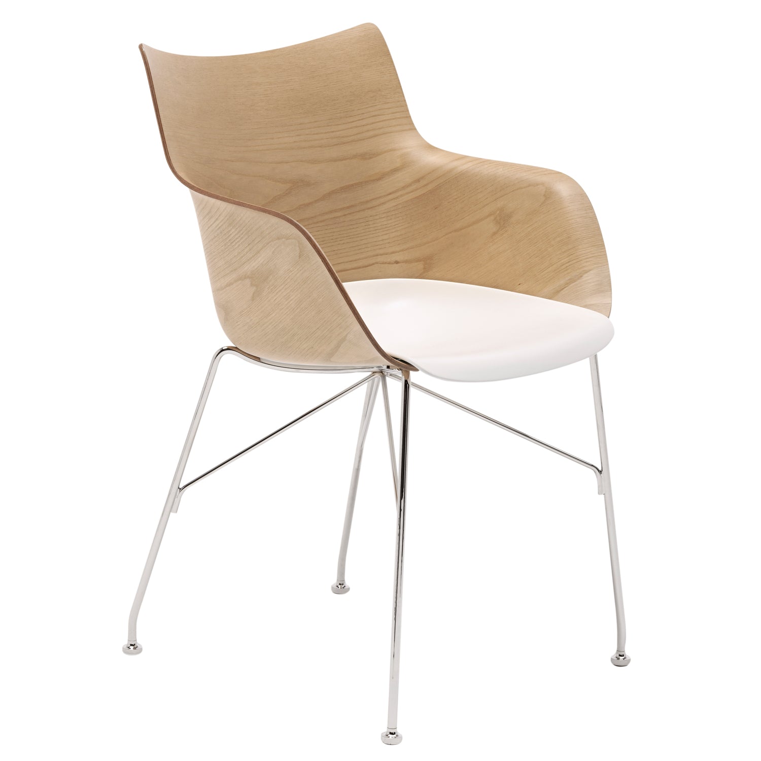 The Q Wood Armchair, designed by Philippe Starck for Kartell, utilises a unique curved wood technology to create a 3D moulded seat and back, ensuring a comfortable seat with an elegant and seamless aesthetic. Characterised by a timeless elegance, Q Wood provides optimum comfort as both a dining chair or in the office as desk chair.