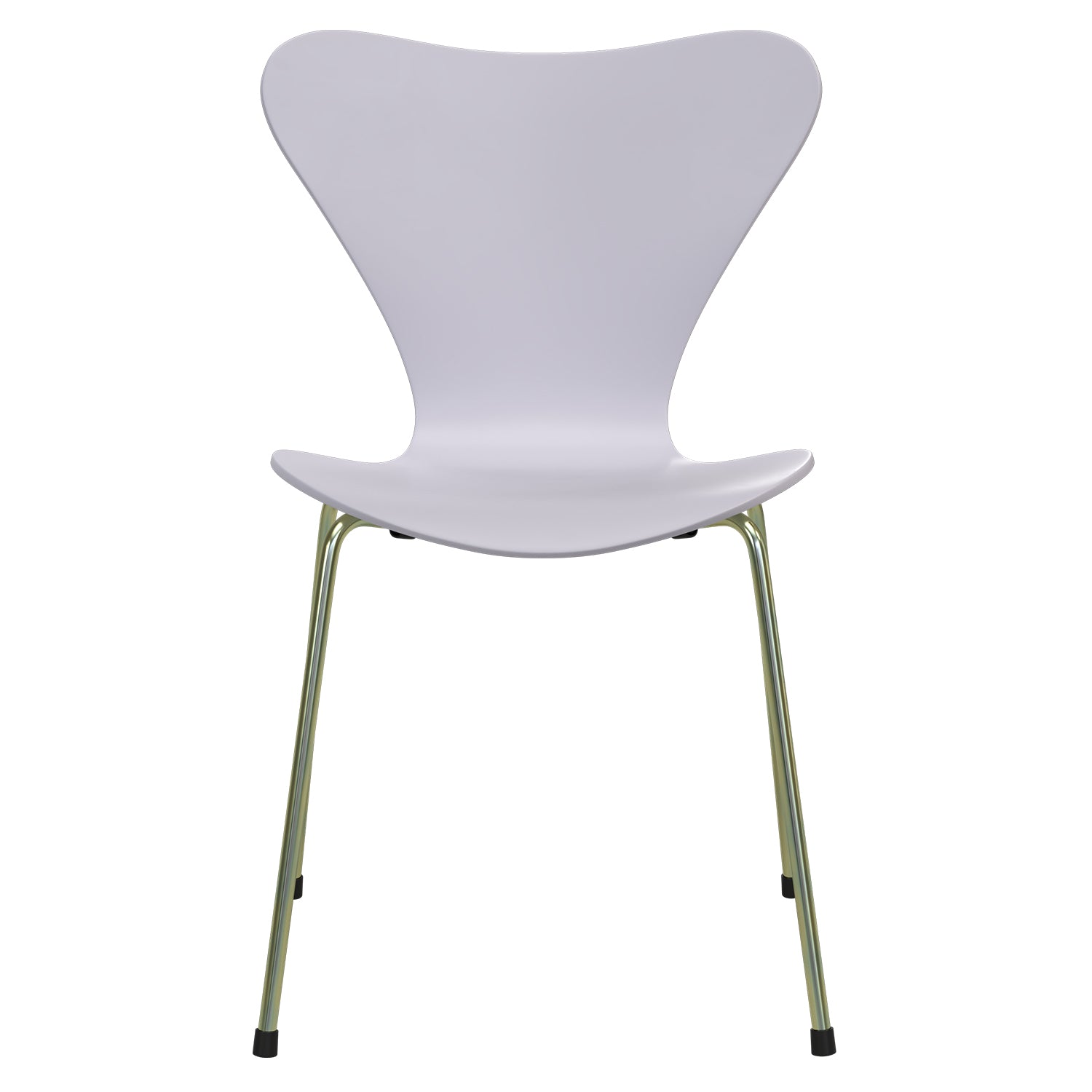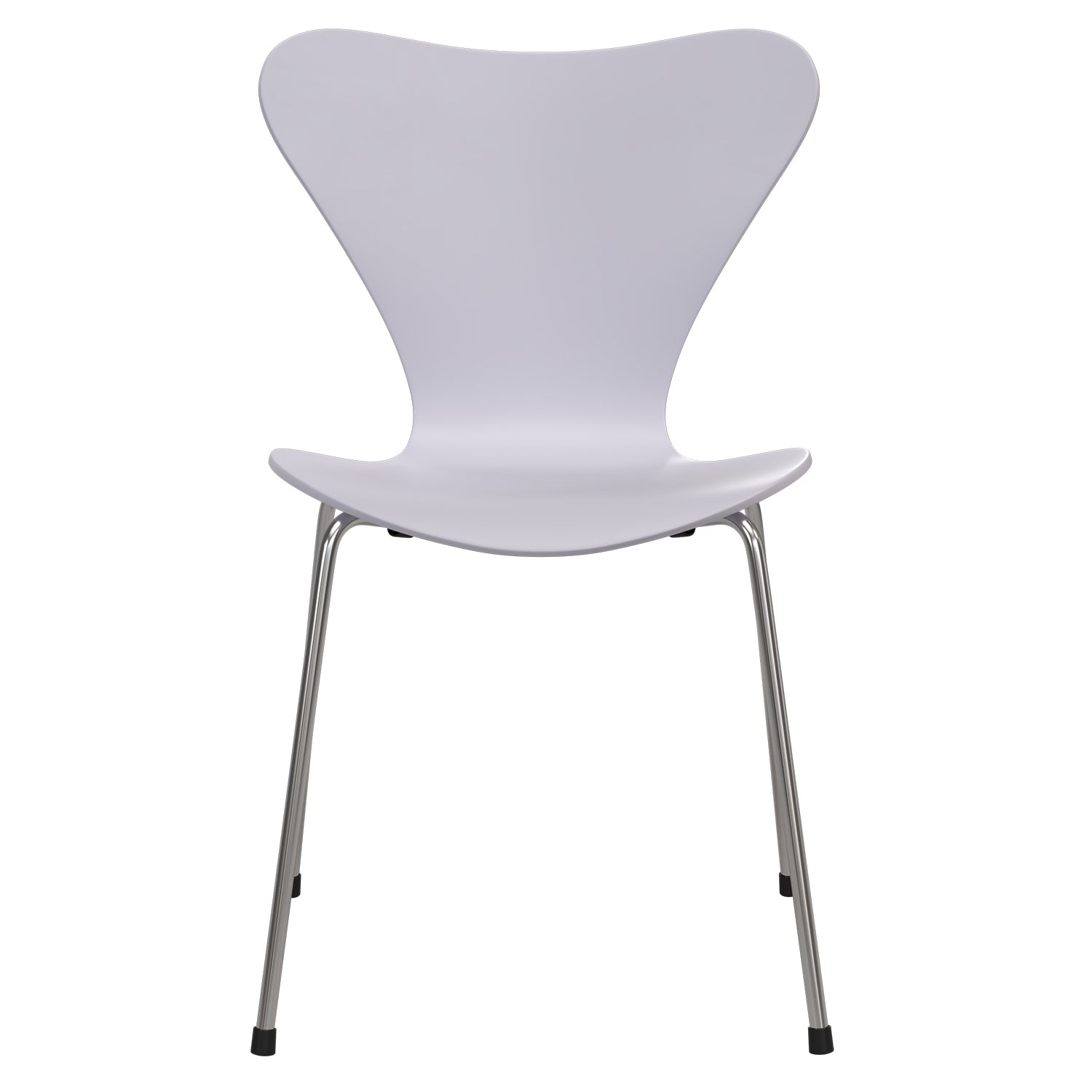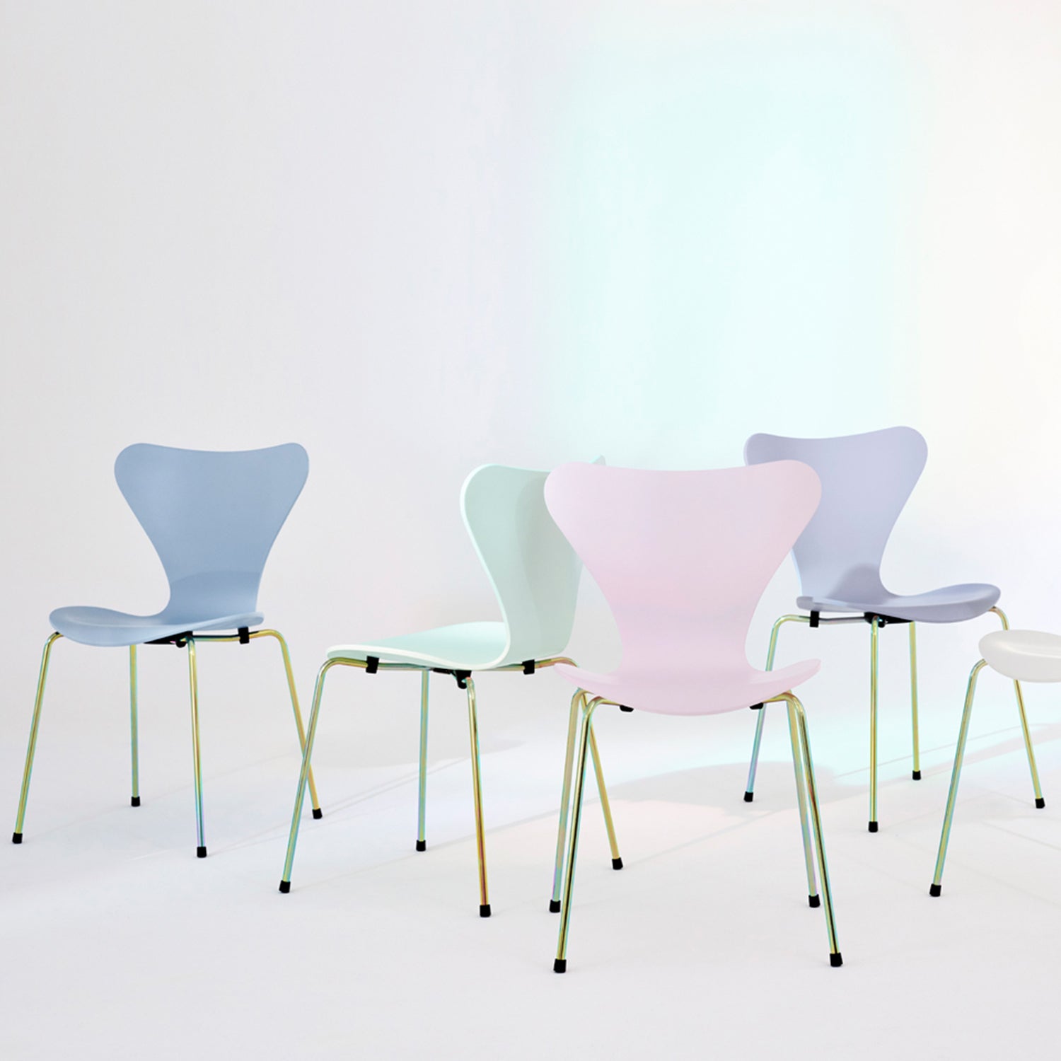 The Series 7 Dining Chair, designed by Arne Jacobsen for Fritz Hansen, gets a brand-new update for the 21st Century. The 7:14am collection features a unique pastel coloured palette inspired by the morning light in Denmark. Ethereal tones of violet blue in the seat, are paired with an iridescent rainbow or chrome finish base.