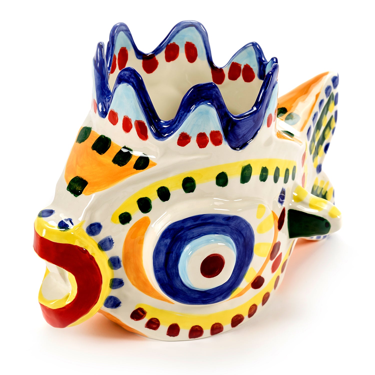 Designed by celebrated chef Yotam Ottolenghi, in collaboration with his friend Ivo Bisignano for Serax, the Sicily Vase collection encapsulates the same vibrant energy of his recipes, in a collection of decorative ceramic vases. Bursting with colour, each vase is crafted in the form of a different character and hand-painted in intricate detail with illustrative patterns.  Inspired by traditional Sicilian ceramic craft, this vase features a fish with a crowned head, referencing the ancient legend of Testa di Moro. Artist Ivo Bisignano’s expressive style is personified in this series of striking vases, conjuring memories of Sicilian flavours under the Mediterranean sun.