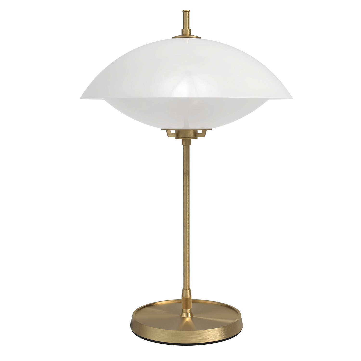 The seashell-inspired Clam Table Lamp, designed by Ahm & Lund for Fritz Hansen, shines a luminescent pearl of light through mouth-blown opal glass. This contemporary table light features exquisite brass details and a timeless aesthetic that illuminates spaces with mood-enhancing light. Explore the entire Clam series, including pendant light and floor lamp.