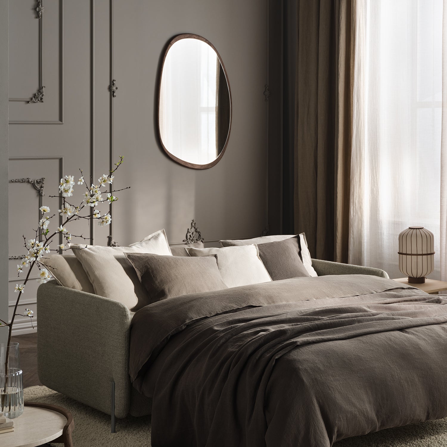 The Elope Mirror, designed by Studio Nøddebo for Bolia take its inspiration from the Danish archipelago of the same name. Referencing the organic, flowing silhouettes of over 400 islands, each wall mirror is crafted with a frame in sustainable oak wood, perfectly carved with a gently rounded edge. Its organic shape makes this the perfect mirror for contemporary and natural interiors. Whilst it can be mounted easily mounted to the wall in various directions, either as a standalone mirror or as a series.