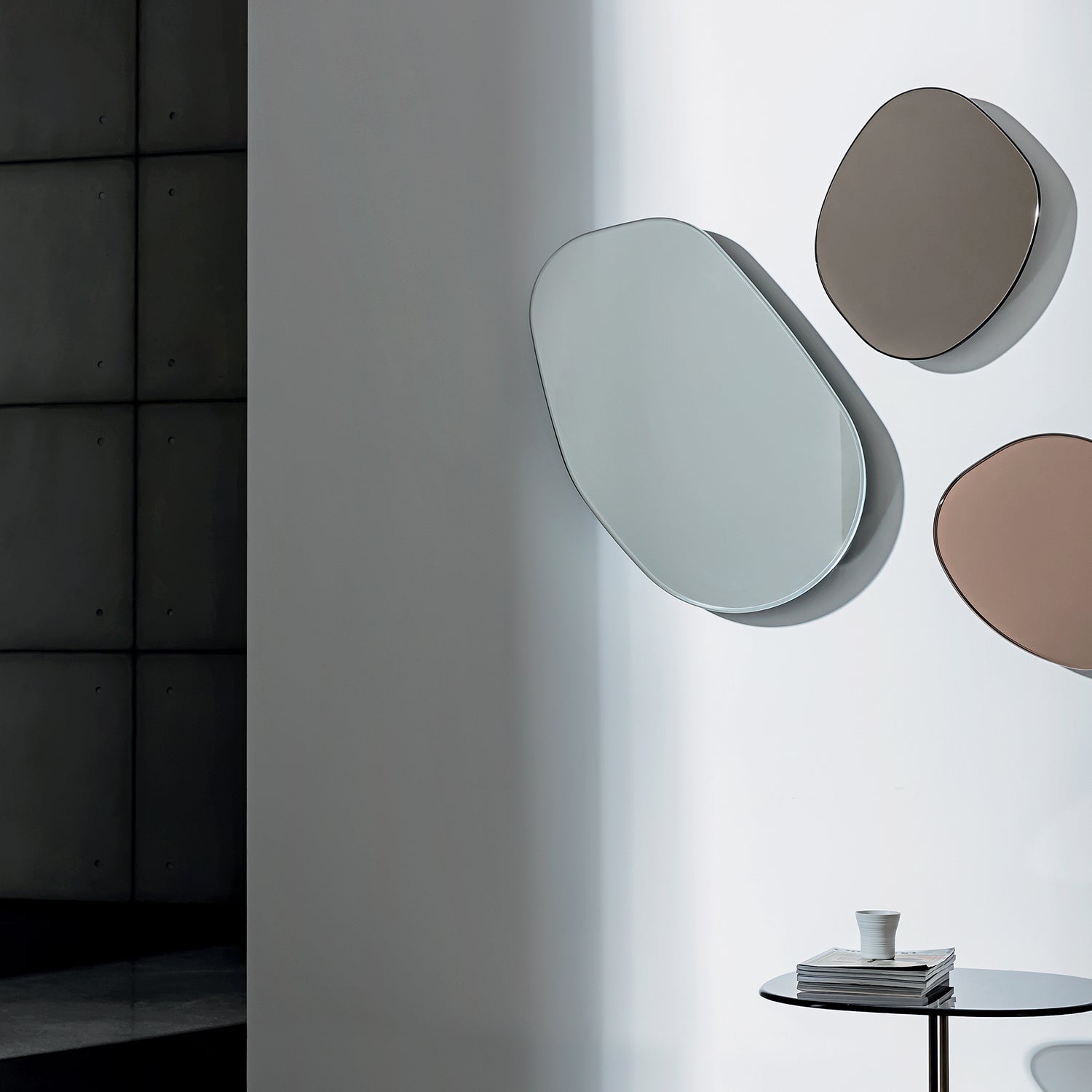 The Gocce di Rugiada Mirror collection, designed by Gianluigi Landoni for Sovet, references nature with its series of organic, flowing forms. Echoing droplets of water, each mirror features a curved silhouette, perfect for living spaces or bedrooms, where a softer visual language is key. An integrated rotating back panel fits to the wall and allows for a 360° rotation of the mirror at different orientations according to the needs of the space. Available in multiple finishes including smoked, bronzed and chromatic glass. Gocce di Rugiada utilises glass of the highest quality whilst each mirror is crafted by expert artisans. 100% Made in Italy.