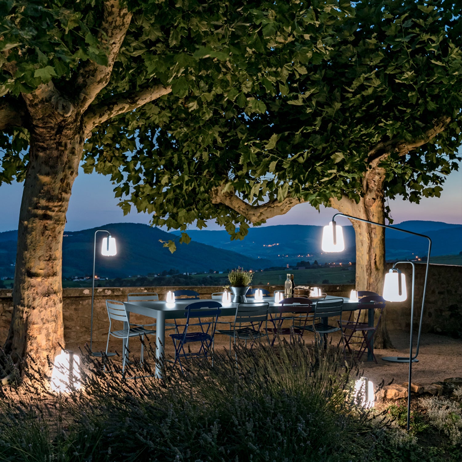 Balad H25 is a versatile and streamlined outdoor light sure to add character to your outdoor space all year around. Made to be mobile, its elegant, curved handle and portable form ensures the light can be easily moved to different locations around the garden, roof terrace or balcony. Whether you place it on the table, suspend it from a branch, or position it poolside, the Balad lamp is sure to illuminate your outdoor space with atmosphere. Features a battery life of 12 hours and a choice of three light temperature settings.