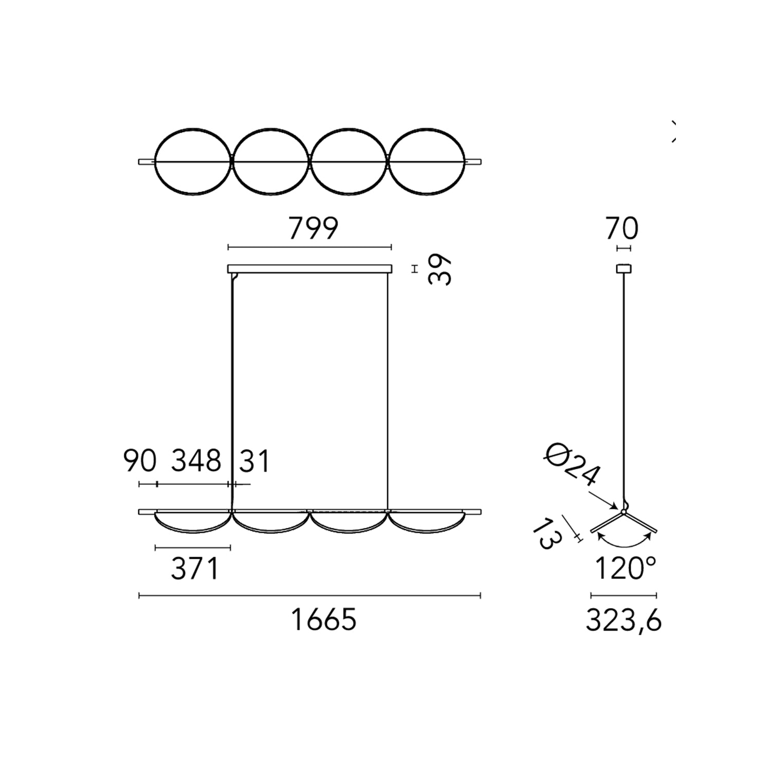 Each light source is surrounded by a gently curved diffuser, alluding to the form of an almond. Whilst a streamlined central tubular structure, crafted from aluminium, supports the light sources. With integrated edge lighting technology, each module can be rotated up to 60º, offering further customisation to light direction.