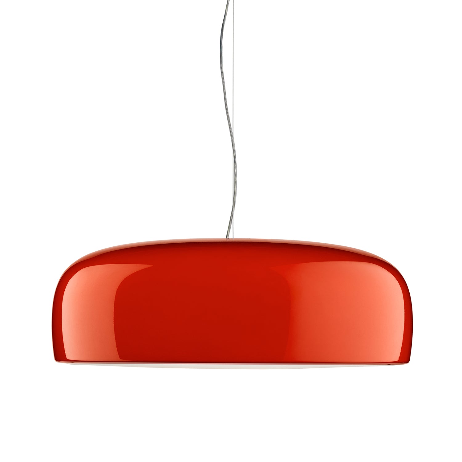 The Smithfield Suspension Light in red, designed by Jasper Morrison for Flos references historic London whilst paying tribute to the iconic lighting installed within the infamous Smithfield meat market. This new and updated version, sees a modern restyling of the classic suspension light, with a colourful gloss finish available in either dark green or pillar-box red. The wide, curved diffuser emits a warm light, perfect for illuminating a kitchen, dining area or meeting space. Integrated dimmer included.