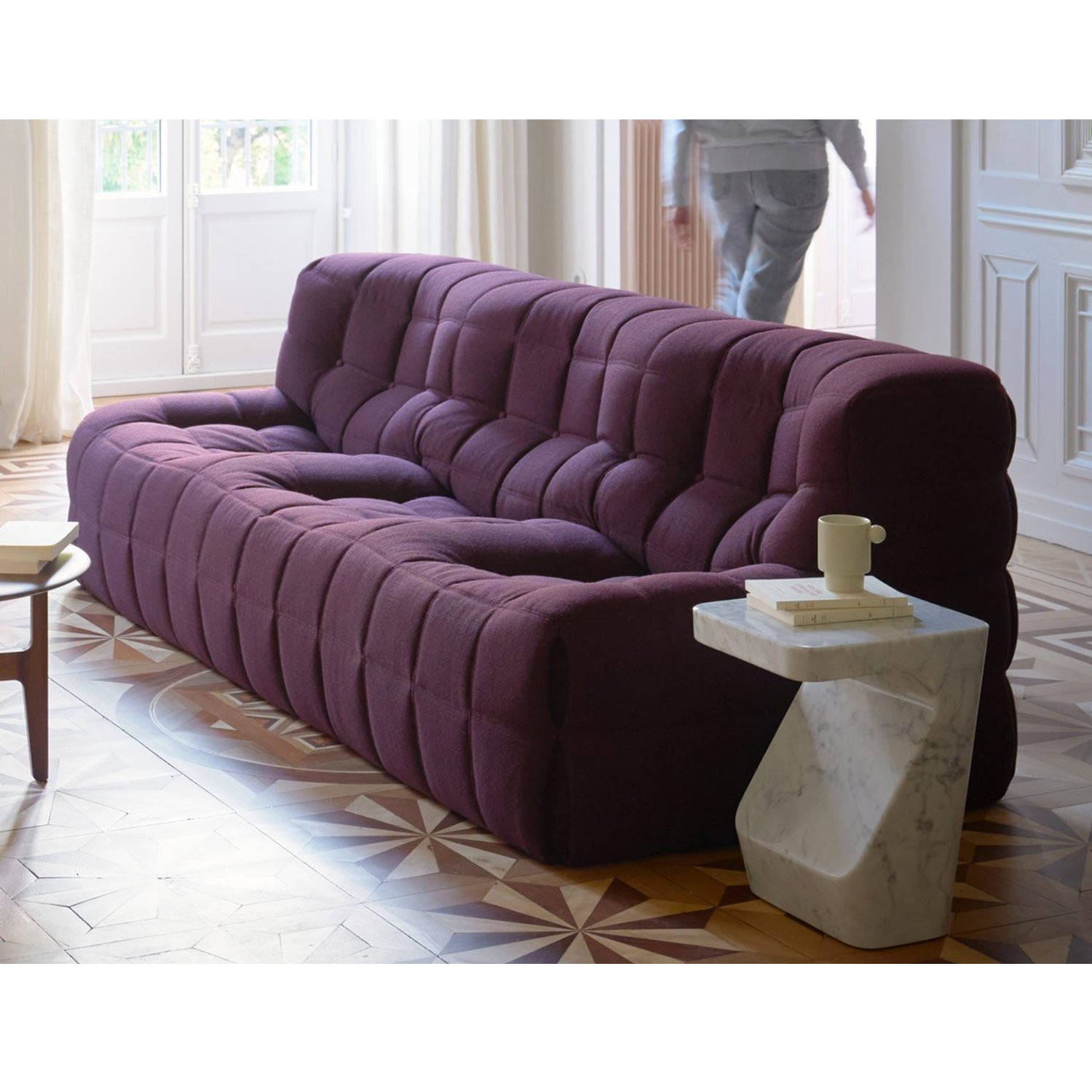 Originally designed by Michel Ducaroy in 1976, Ligne Roset have reissued the Kashima sofa with a brand new update. This emblematic design offers the ultimate in both comfort and aesthetics, with its unmistakable padded upholstery quilted in a grid formation. Referencing the silhouette of a button-backed chesterfield, Kashima elevates the upholstery technique by combining it with a striking minimal form. Simplicity is key to its design, with the all-foam seat offering superior comfort with multiple layers of high-density foam. With attention to every detail, the corners feature “pinched” seams, reinforced by interior laces.
