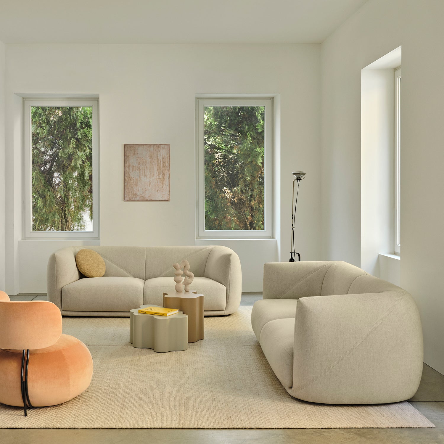 The exclusively-designed fabric features a series of embossed fine lines, subtly alluding to the mainsail and jib of sailboat traversing the sea. Vela’s compact form make this the perfect solution where space is at a premium, whilst the integrated armrests and seat back provide the ultimate comfort, padded with multiple layers of foam and feather.