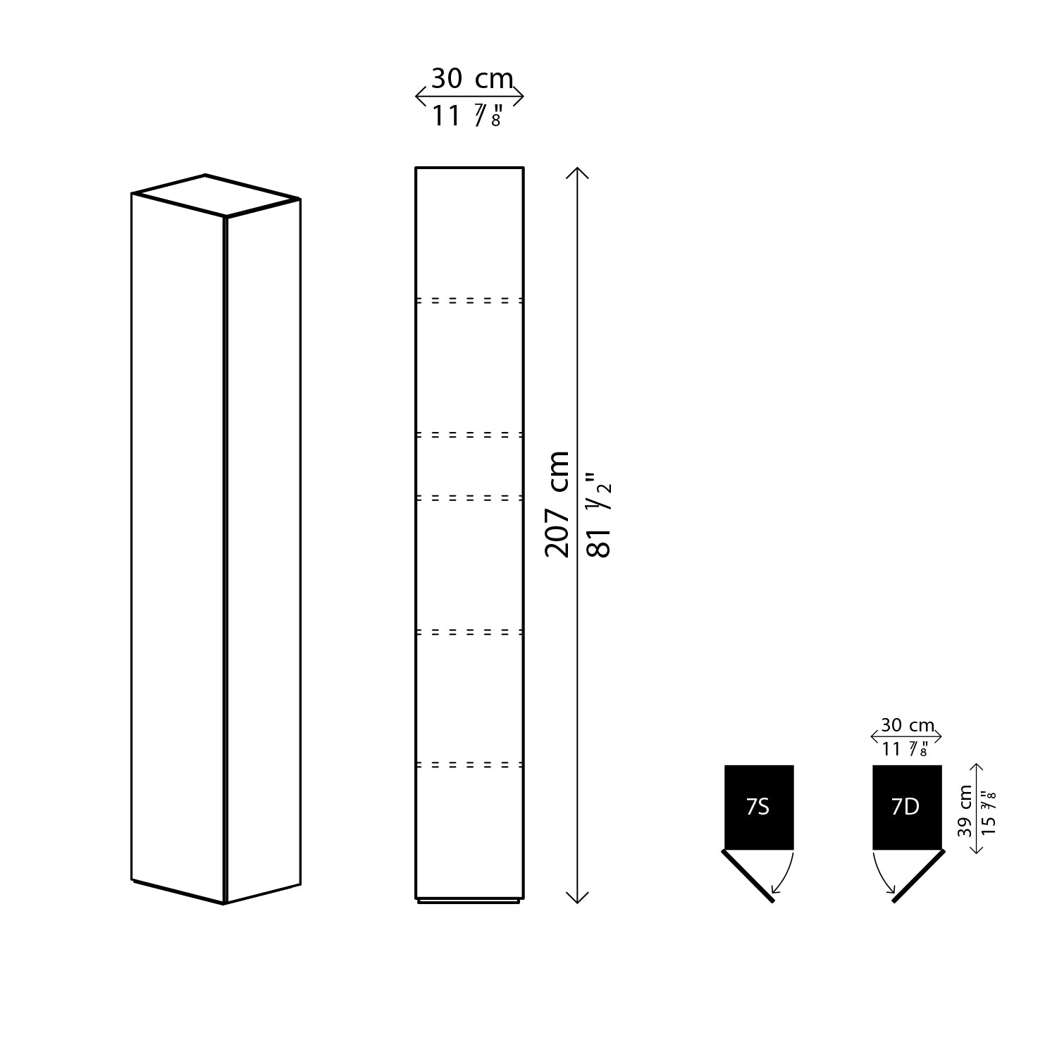 Dimensions: H 207 x W 30 x D 39 cm