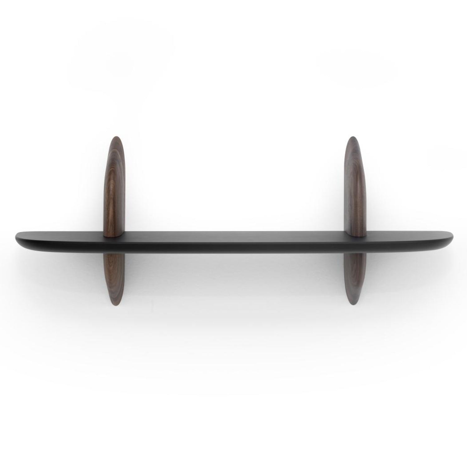 Materials: Solid American walnut with natural varnish and satin black lacquered shelf or varnished whitened solid oak and satin green lacquered shelf.