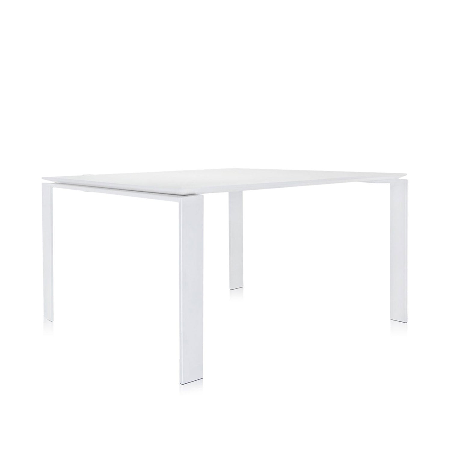 Designed by Ferruccio Laviani for Kartell in 2004, Four Table is a functional and refined table with a strict geometric design. Thanks to the elegant design solution, Four Table can be used as a dining table, meeting and conference dining table or office desk. Four Table comes in four sizes and several colour combinations. The legs are available in aluminium or painted steel black or white. The top, in stratified laminate, is available in black or white and has a soft touch finish option.