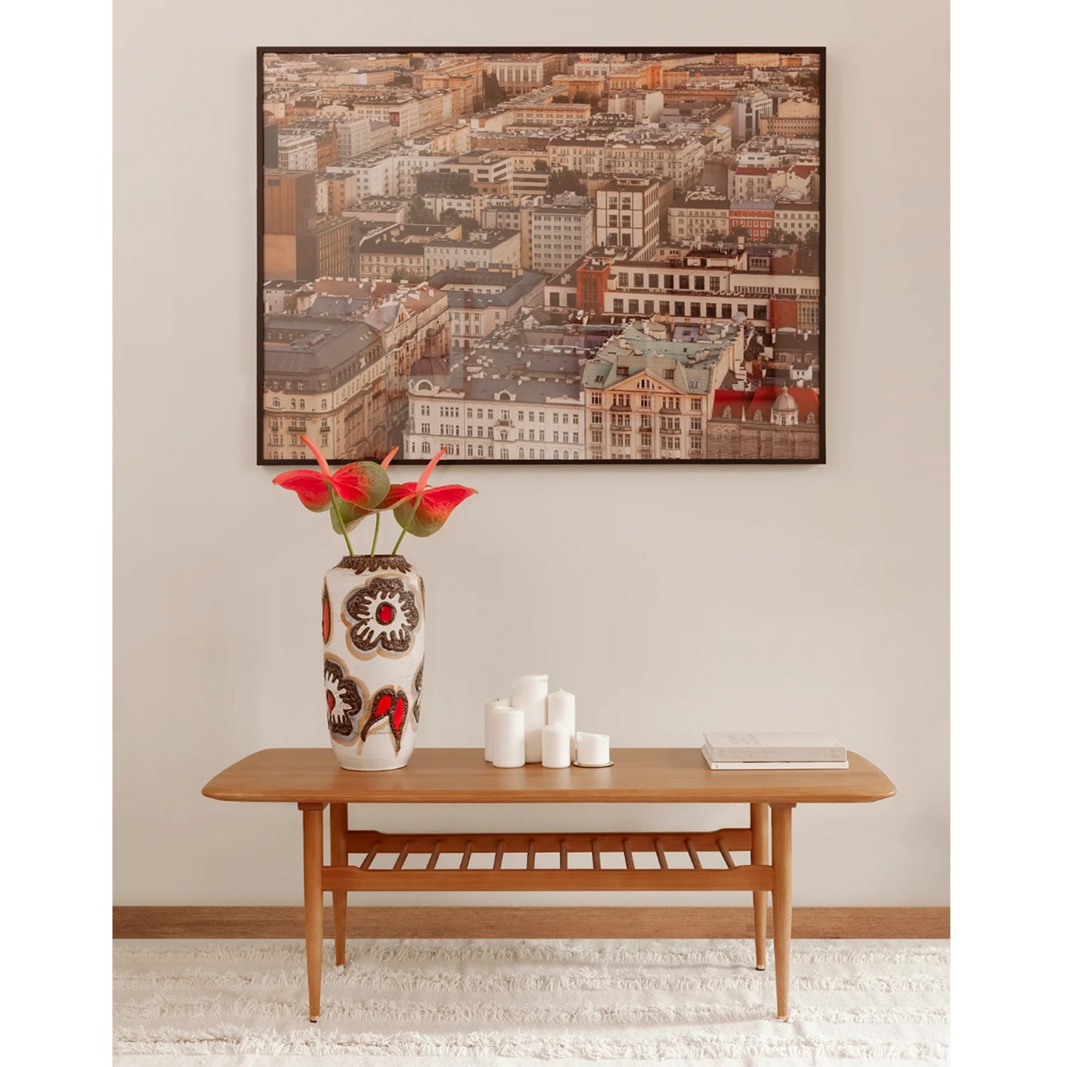 The Fox Teckel Coffee Table by 366 Concept typifies the mid-century modern aesthetic with its rectangular table top and tapered legs. Expertly crafted in solid ash with a dark finish, this rectangular coffee table features gently bevelled edges and a shelf for storing books and magazines. Feet finished with brass details. Combines perfectly with the armchairs and sofas by 366 Concept. Crafted from solid ash.