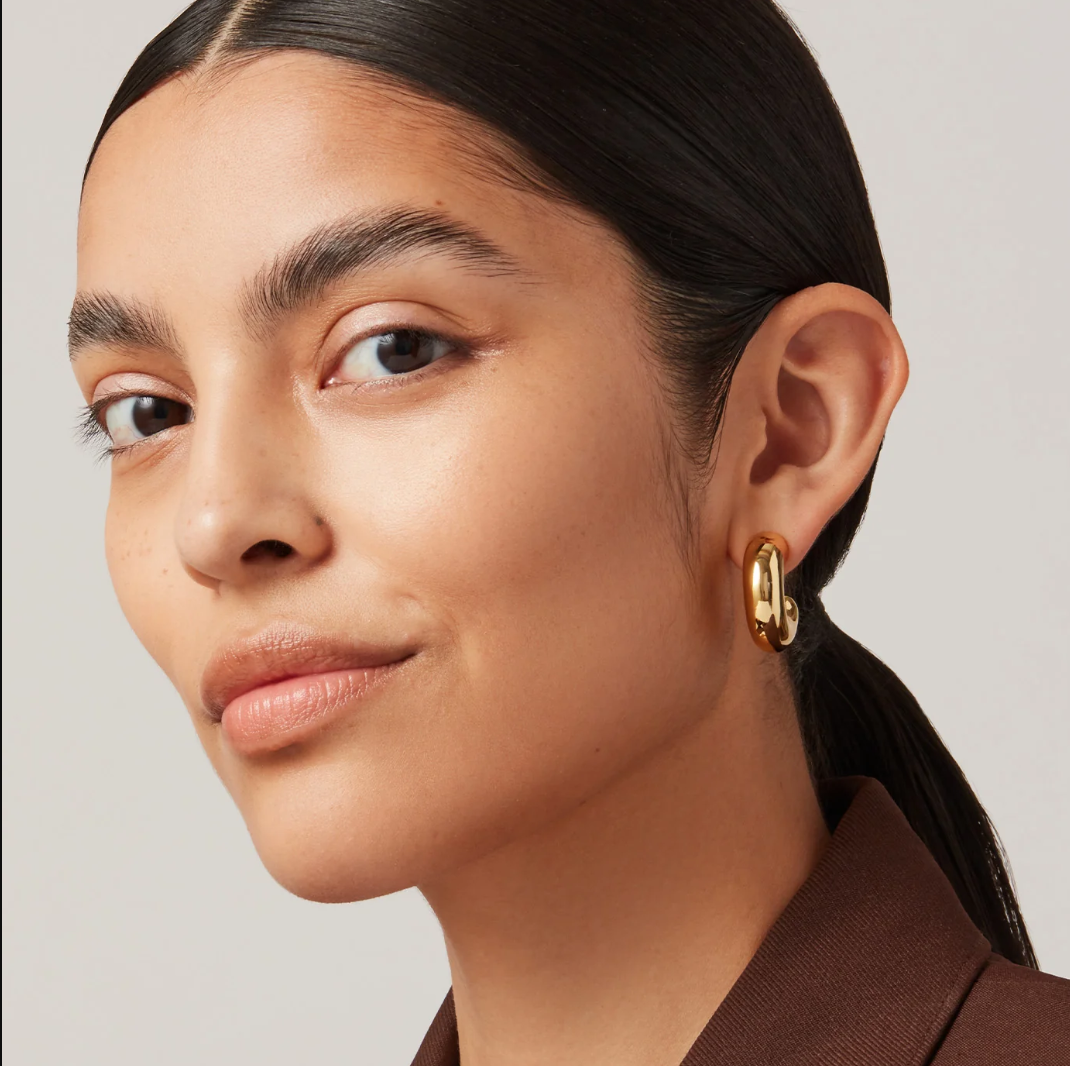 The Tome Hoops, Large by Jenny Bird are sure to add the finishing touch to your outfit. These chunky round hoop earrings are perfect for both a daytime and evening look. Crafted from brass dipped in 14k gold or silver, Le Tome have a tubular structure and are finished with a ball closure to the back. High-polish finish. Packaged in a luxury gift box these hoops make the perfect gift for a loved one or for yourself.