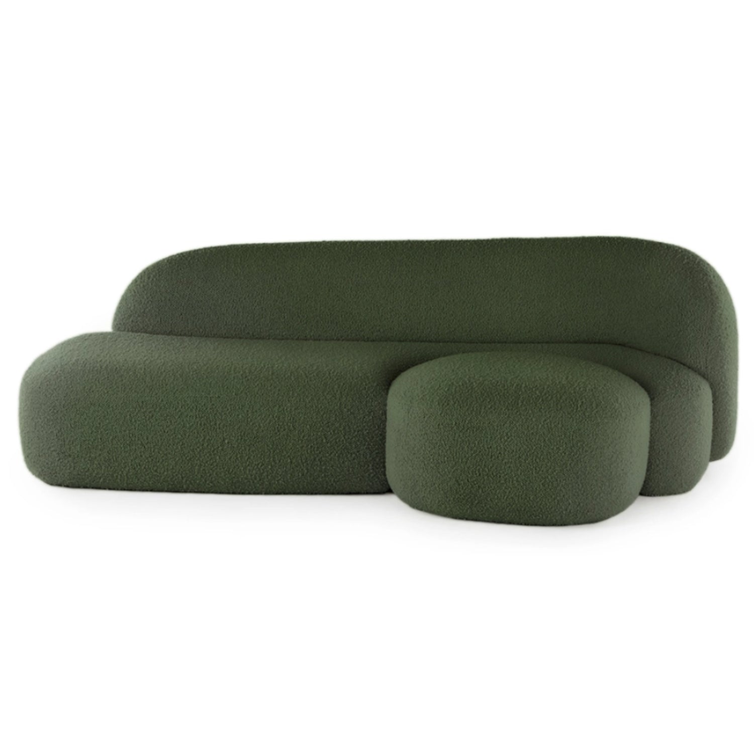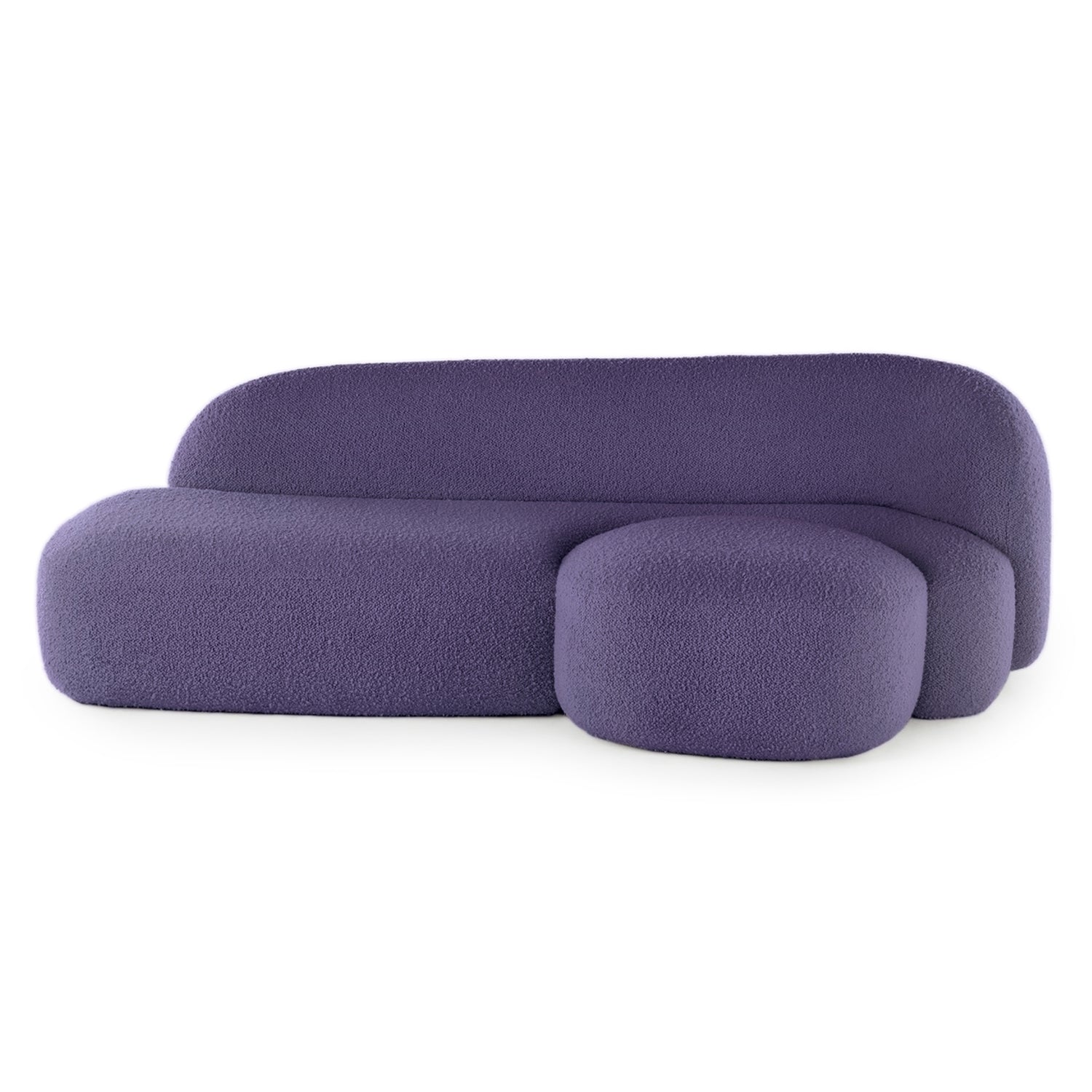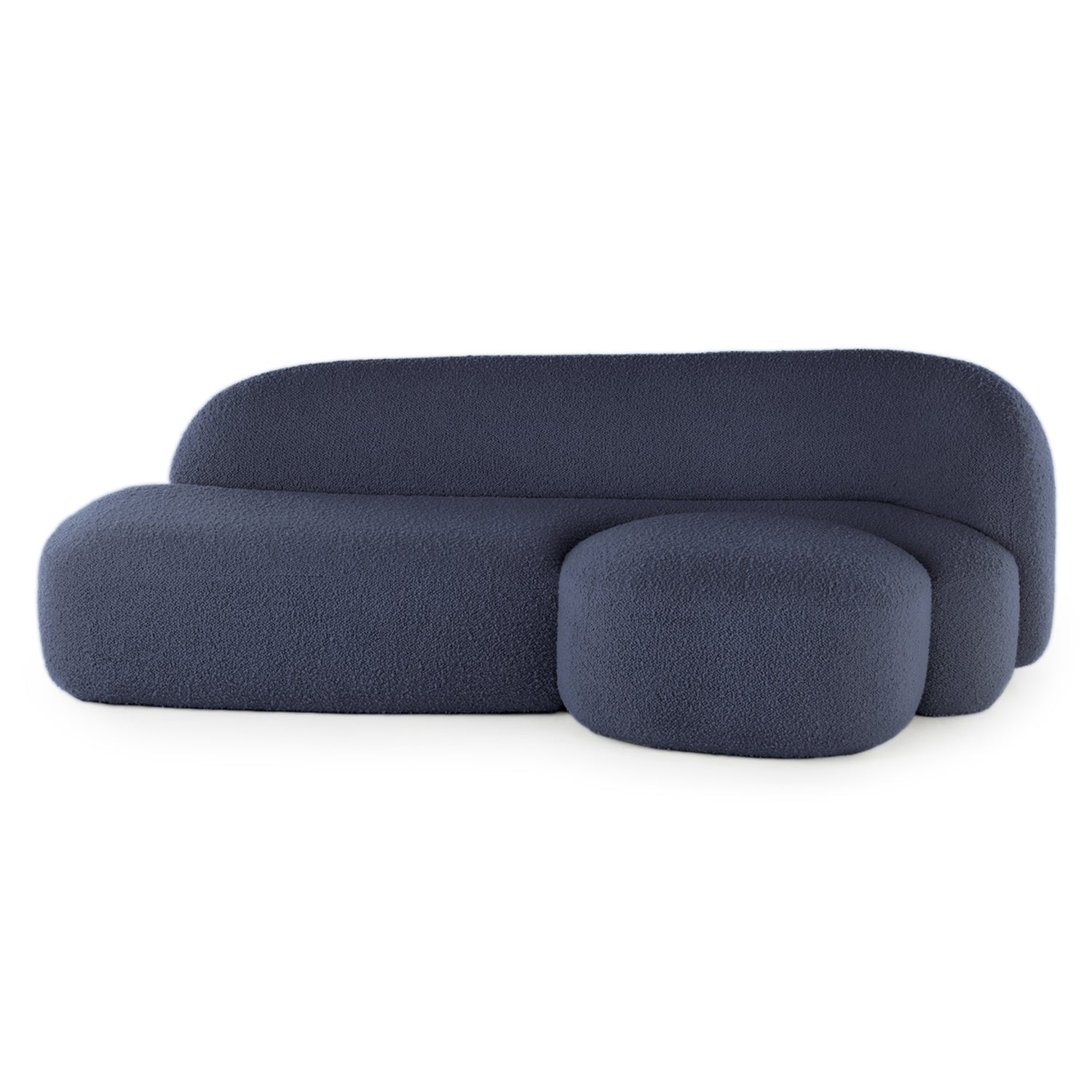 Designed by Patricia Urquiola for Kartell the Aaland Sofa is characterised by its series of inviting curves. A silhouette of sinuous lines is paired with a generous foam-filled seat and back upholstered in a tactile stretch bouclé fabric. The Aaland collection features a sofa, armchair and pouf referencing an archipelago, they’re designed to be placed together creating visual impact with their complementary shapes. Each module appears like a tiny island creating new spaces for comfort and togetherness. This three-seater sofa features an integrated footstool perfect for lounging in the ultimate comfort.