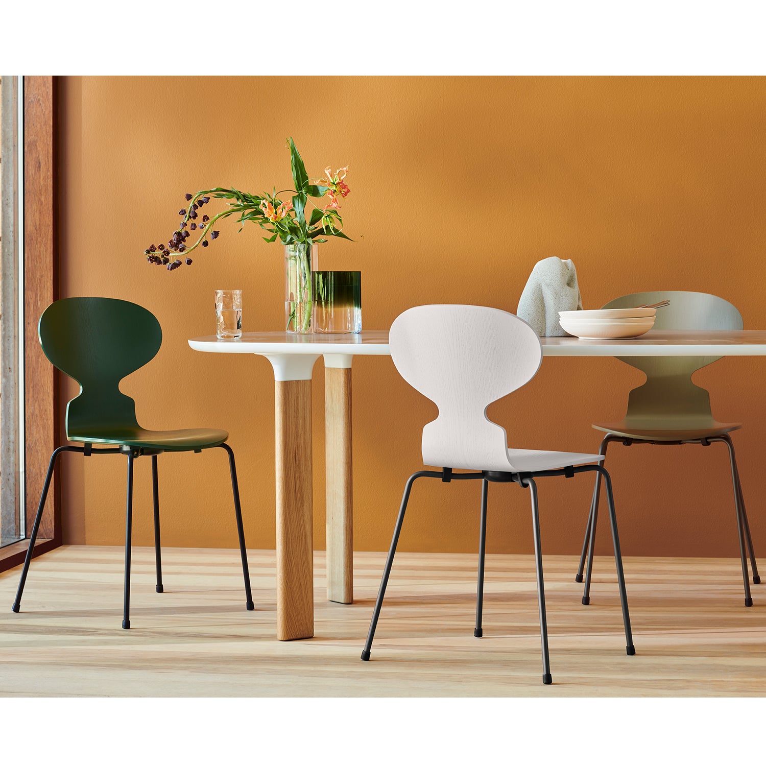 The Ant Chair, designed in 1952 by Arne Jacobsen for Fritz Hansen, has established itself as one of the most iconic designs of the Twentieth Century. Artfully combining a distinctive profile with nine layers of pressure moulded veneer, this modern dining chair is sure to become the focal point of the your interior space. Crafted by skilled artisans each chair is designed to last a lifetime.