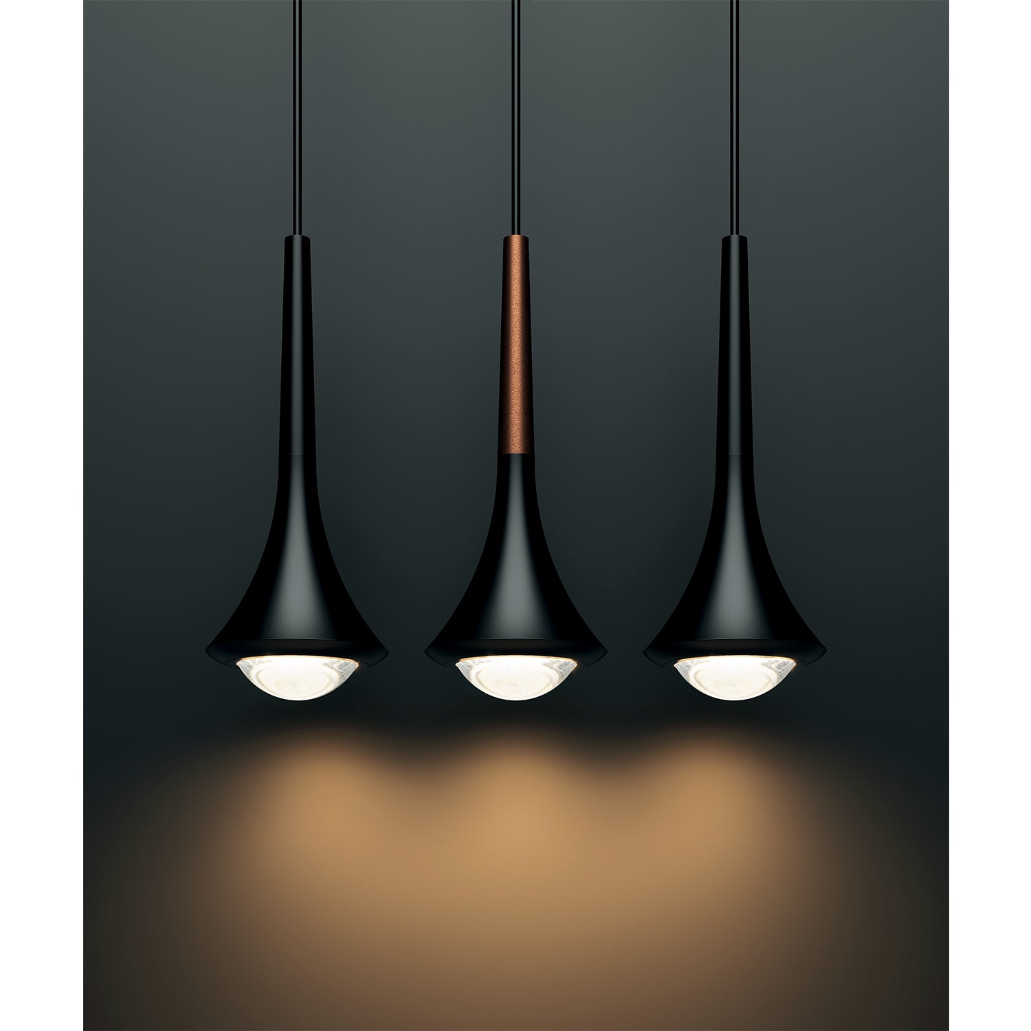 Inspired by the lightness of spring rain, the Rain Pendant Light by LODES combines a streamlined form with a contemporary finish. Either installed as a standalone light or as part of a collection, this LED suspension light with convex lens adds a striking statement to any room. Rain is suspended from a thin power cord, up to 4 metres long and can be customised to suit your interior.