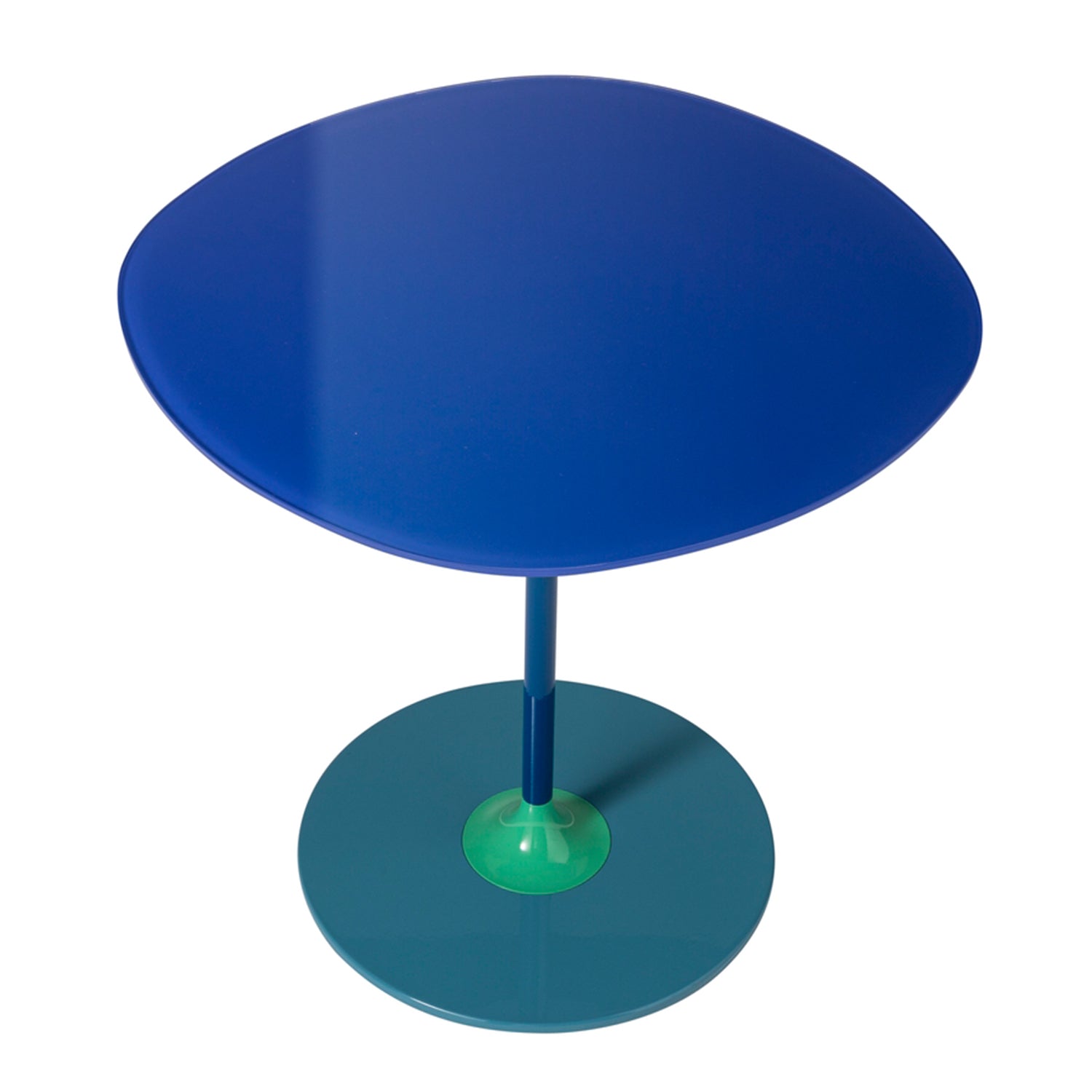 Materials: structure: painted steel. Table top: back-painted tempered glass