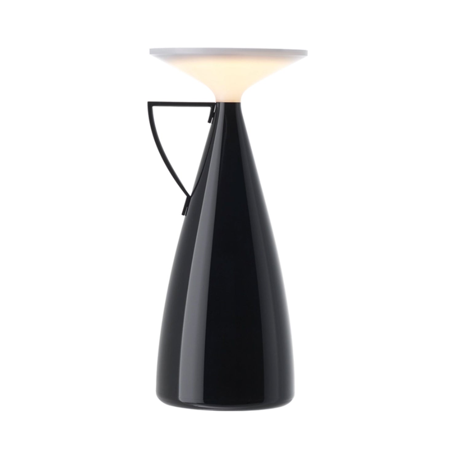 Perfect for illuminating an intimate outdoor dining table, this battery-powered lamp boasts a battery life of 50-200 hours (depending on brightness setting) making it suitable for multiple situations. Its striking silhouette features a slim handle and sculpted body crafted from recycled thermoplastic technopolymer in a variety of finishes.
